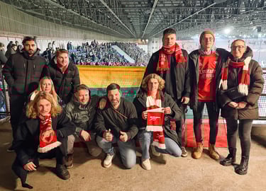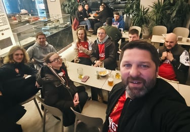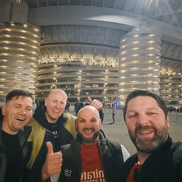 Į Milaną „Arsenal Lithuania“ nariai suskrido net iš kelių skirtingų šalių: Airijos, Anglijos ir, žinoma, Lietuvos. Kaip jau tampa gražia tradicija, vykstantiems buvo sukurtas bendras „chat’as“, o rungtynių dieną Rokas atrado kavinę, kurioje galėjome susirinkti prieš rungtynes. Likus kelioms valandoms iki mačo ten susirinko beveik visi – su dalimi jau buvome pažįstami iš ankstesnių kelionių, su kitais susipažinome pirmą kartą. Pakėlėme po porą bokalų ir kartu patraukėme stadiono link.
